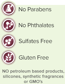 Sulfates, acrylates, pegs, parabens, synthetic fragrances, GMOs, petroleum byproducts, silicones, alcohols, fd&c colors, phthalates or any other harmful ingredients.